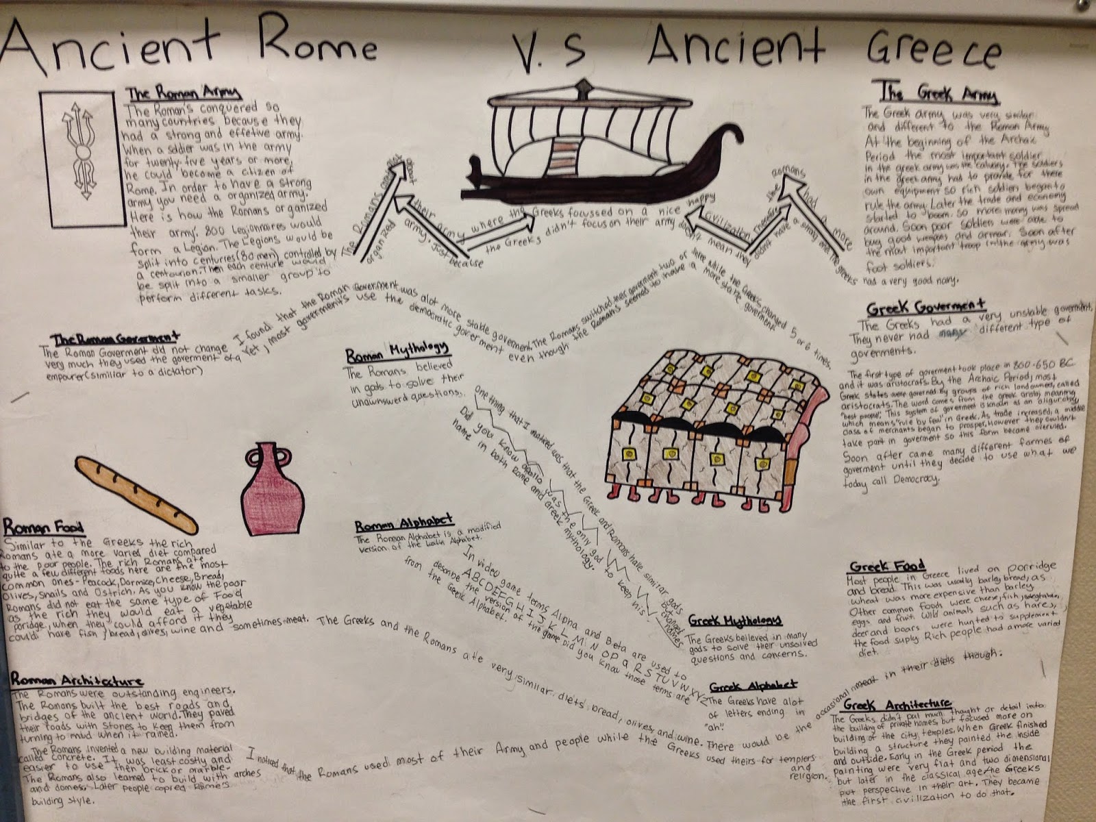This year, we are amalgamating term one and two work into various 'continuous' projects, which will be presented to the school during student-led conferences in February. We studied various aspects of life in ancient Rome and Greece, and the students' first project was to do a quick comparison between these civilizations and modern day Canada. Presently, students are working on writing historical stories based on the factual information which we studied/researched in class. Each student has to create a character from either ancient Rome or Greece, and present their autobiography to the class. To enhance their presentations, students are creating videos (using the Loopster App on iPads) to visually represent aspects of their autobiographies (family, houses, markets, city states, food, gods, warfare etc.).